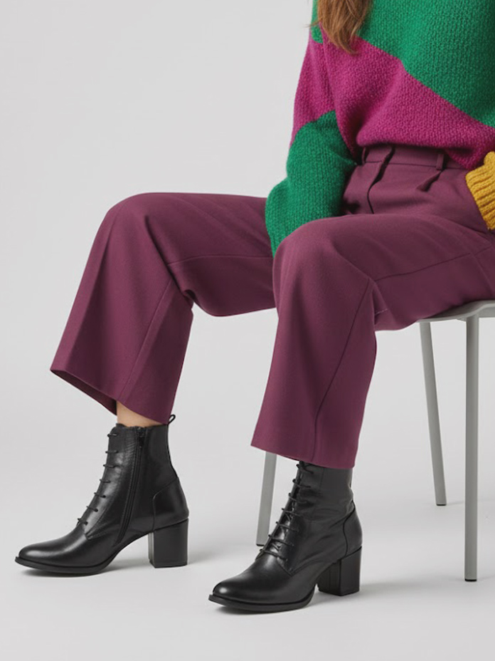 דריה היא בדיוק כזו. מגף עם עקב גוש יציב שנותן לך את הגובה והנוכחות – בלי לשלם על זה בכאבים בסוף היום. השרוכים מוסיפים לה אופי קלאסי ומעניין, והרוכסן בצד? הוא מה שהופך את הבוקר לפשוט יותר.