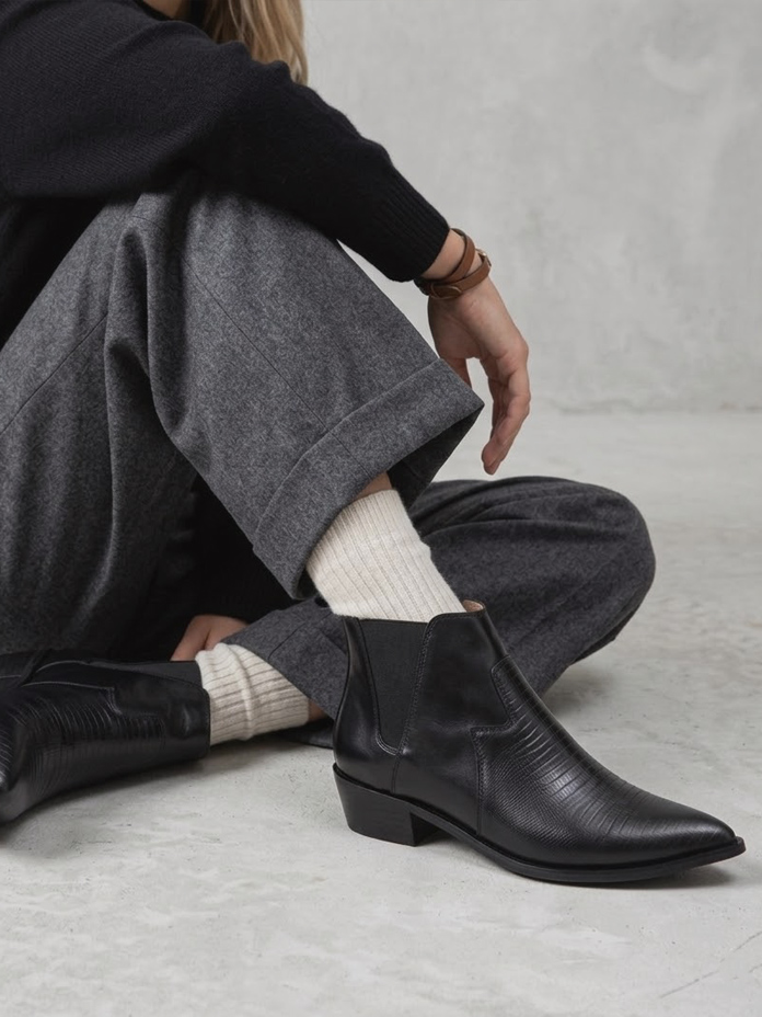 קצה מחודד שמעודן את הרגל, עור איכותי שמתיישן יפה ומשתפר עם הזמן, וגזרה שעובדת עם הכול – ג׳ינס, מכנסיים מחויטים, שמלה. הוא פשוט יודע להשתלב.
