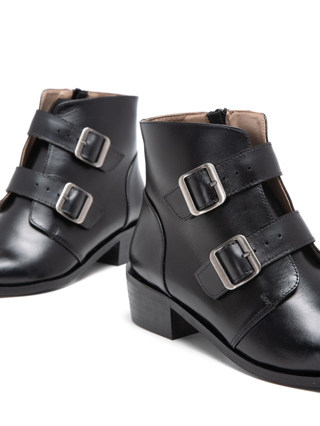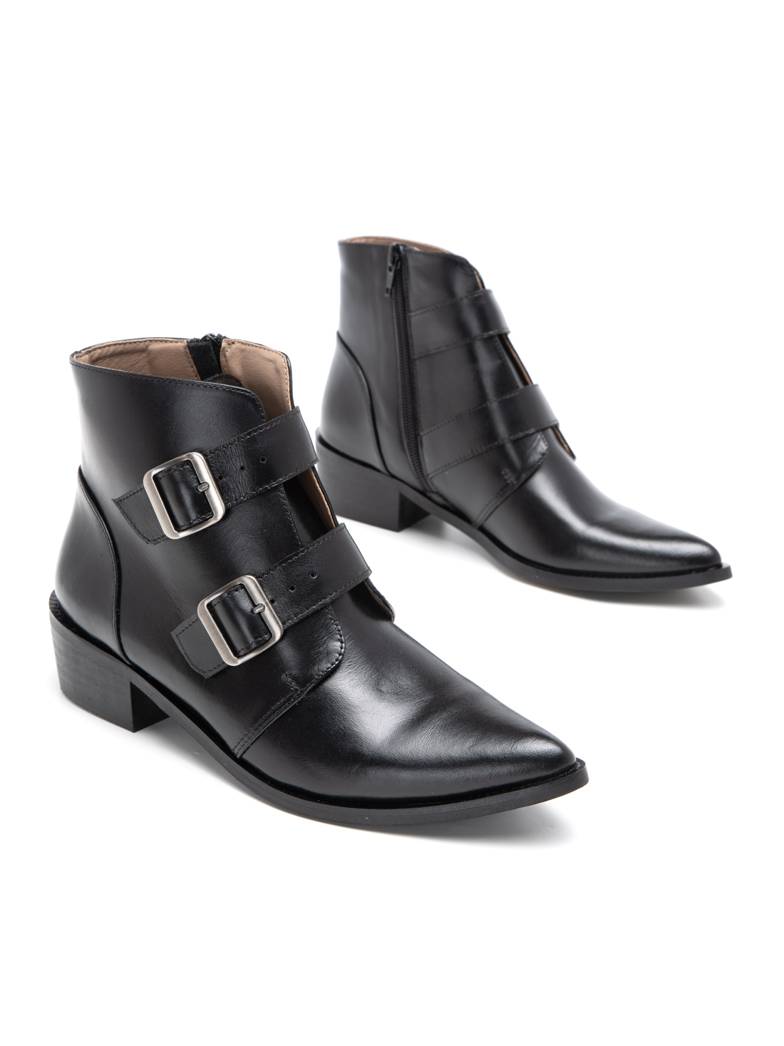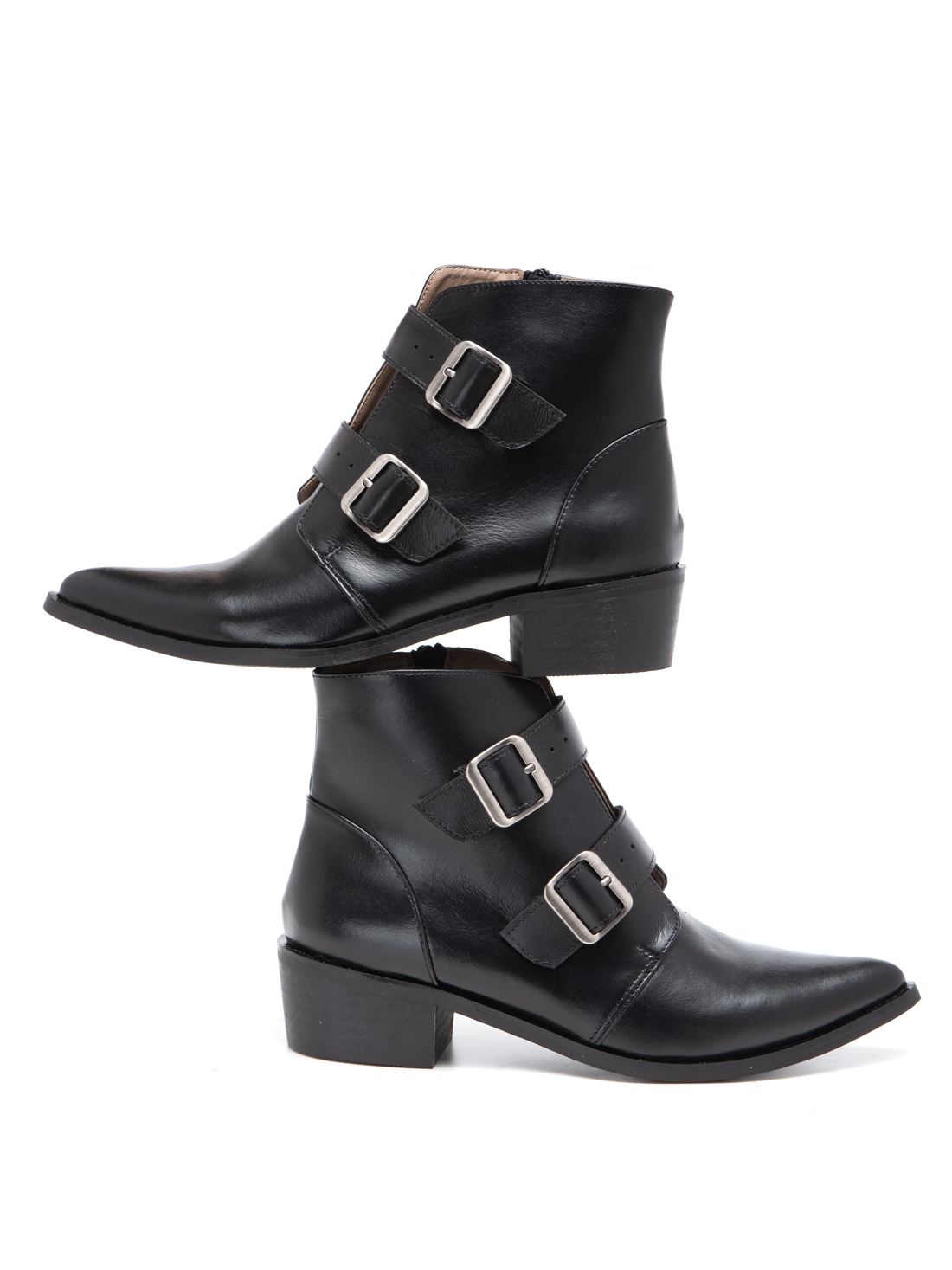 זה המגף שיודע להיות גם רוק וגם אלגנטי. האבזמים הם לא רק עיצוב – הם הצהרה. רוכסן פנימי שעושה את החיים פשוטים יותר, קצה מחודד שמותח את הרגל, ועור איכותי שמרגיש טוב כבר בנעילה הראשונה.