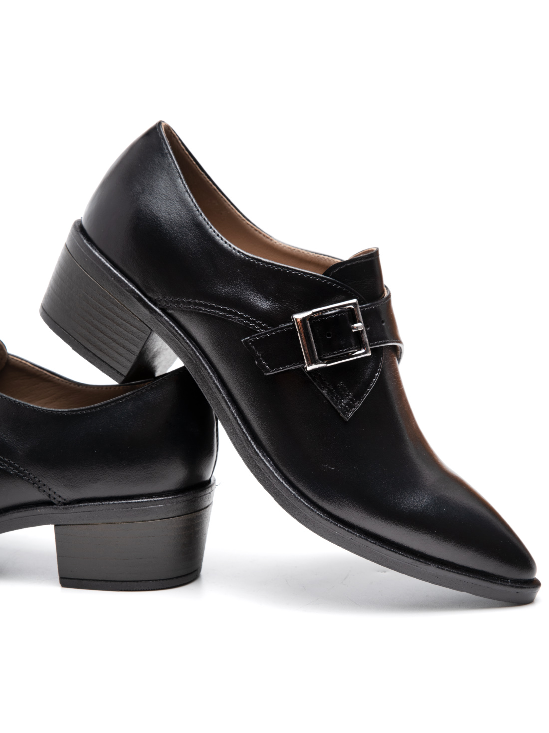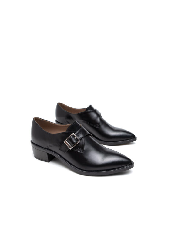 עיצוב אוקספורד קלאסי עם טוויסט נשי: אבזם צדדי מעוצב, גזרה מחודדת שמחמיאה לכף הרגל, ועקב בגובה 3 ס"מ שמוסיף גובה בלי לוותר על יציבות. הנעל שמרגישה כמו החלטה – לא כפשרה.