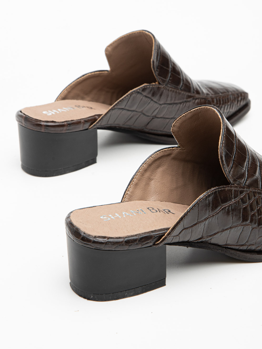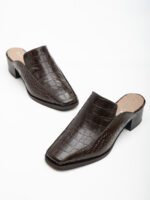 מיול שוקולד עמוק שמדבר בשקט ונשמע בחדר. הגזרה המרובעת, טקסטורת הקרוקו המבריקה והעקב המרובע הנמוך — כל הפרטים עובדים ביחד כדי ליצור נעל שנראית יקרה בלי שניסתה. 4 ס"מ שנותנים גובה בדיוק הנכון, ותחושת הליכה יציבה ונוחה גם אחרי יום ארוך.