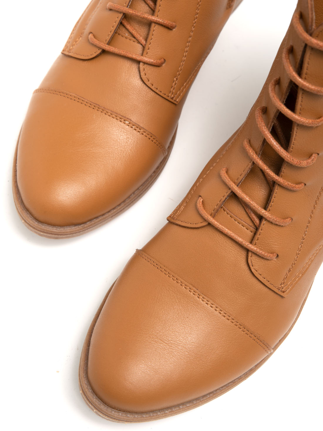 דריה היא המגף הקלאסי שחיכית לו. שרוכים, רוכסן צדדי לנוחות, וסוליה שטוחה שמרגישה יציבה ונעימה לאורך כל היום.