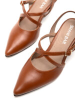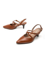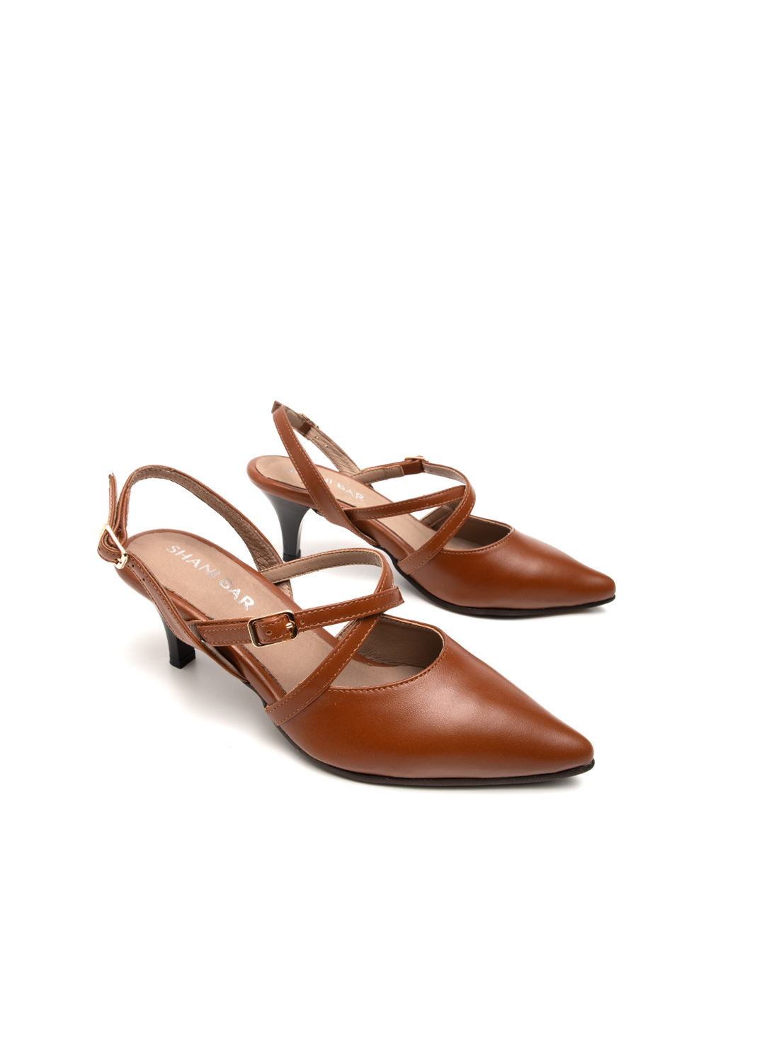 הרצועות הצולבות הן הקסם – הן מחזיקות את הרגל במקום, יוצרות קו חזותי מעניין, ומוסיפות תחושת תנועה לעיצוב. הבוהן המחודדת נותנת אלגנטיות טבעית, והעקב בגובה 6 ס"מ הוא הגובה המדויק – מספיק כדי להרגיש מסודרת, אבל לא כזה שמגביל אותך. השחור קלאסי ומתוחכם, והקוניאק חם ועשיר – שניהם עובדים עם כל דבר בארון.