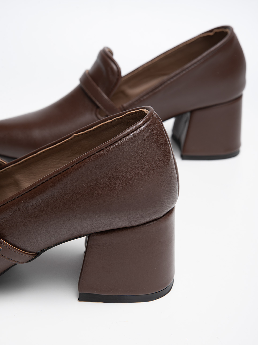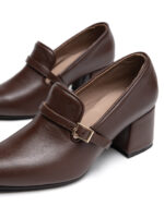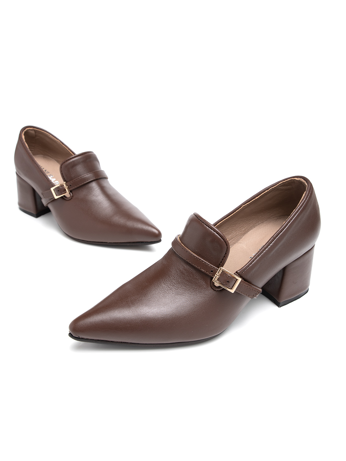 ליבי בחום שוקולד היא הנעל שמרגישה קלאסית אבל לא משעממת. גוון חום עשיר, גזרה מחודדת, אבזם צדדי עדין, ועקב 6 ס"מ שמוסיף נוכחות בלי להיות צועק.