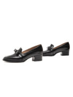 הפפיון הוא הנקודה – לא גדול מדי, לא קטן מדי, בדיוק במקום הנכון. הוא מוסיף נשיות רכה לקו המסורתי של הלופר, והעקב הנמוך נותן מבנה ויציבות בלי להרגיש "בעקבים". הבוהן המרובעת והתפירה המוקפדת מסגרות את כף הרגל בצורה מחמיאה, והעור השחור החלק נותן ברק עדין שמעלה את הנעל רמה.