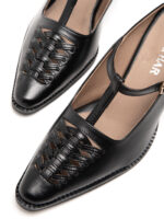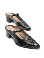 קו נקי עם נגיעה אומנותית. הרצועה המרכזית יוצרת מסגרת חכמה לכף הרגל, והפרט הקלוע בחזית מוסיף תנועה ועניין בלי להיות צועק. העקב בגובה מושלם – מספיק כדי להאריך את הרגל, אבל עדיין יציב ונוח למהלך של יום שלם. שלושה גוונים שכל אחד מהם מספר סיפור אחר: שחור קלאסי ומתוחכם, קוניאק חם ואדמתי, וזהב מטאלי שמוסיף ברק בלי להיות מוגזם.