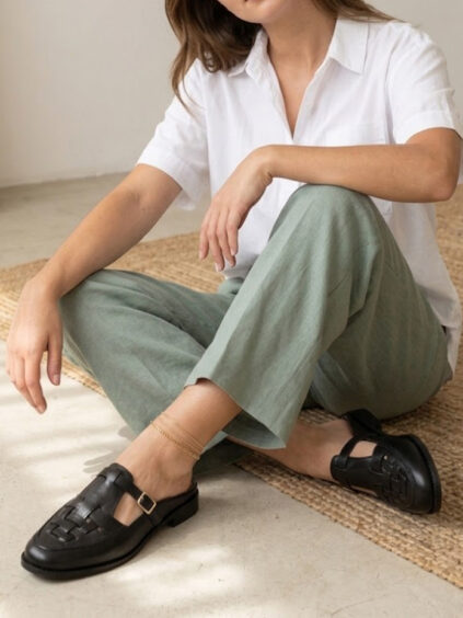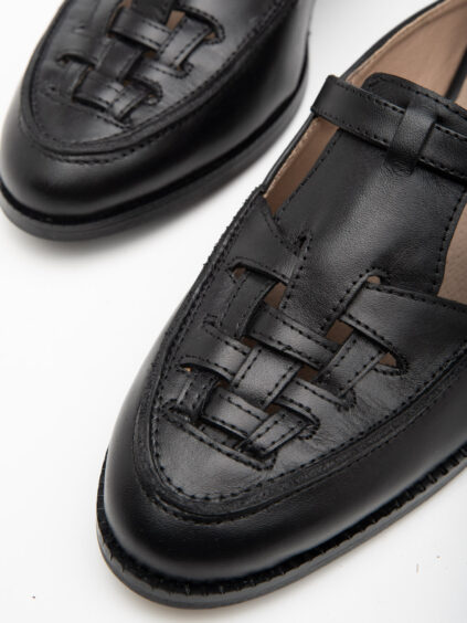 יש משהו בעקב קיטן שלא מיושן לעולם. הוא לא מנסה להרשים — הוא פשוט עובד. פרלה היא נעל סירה בגובה 3 ס"מ, עם קו מחודד נקי וטקסטורת קרוקו שחורה שנותנת לה נוכחות בלי רעש. את נועלת אותה ומרגישה מדויקת — לא מאומצת, לא מתנצלת. רק נכון.