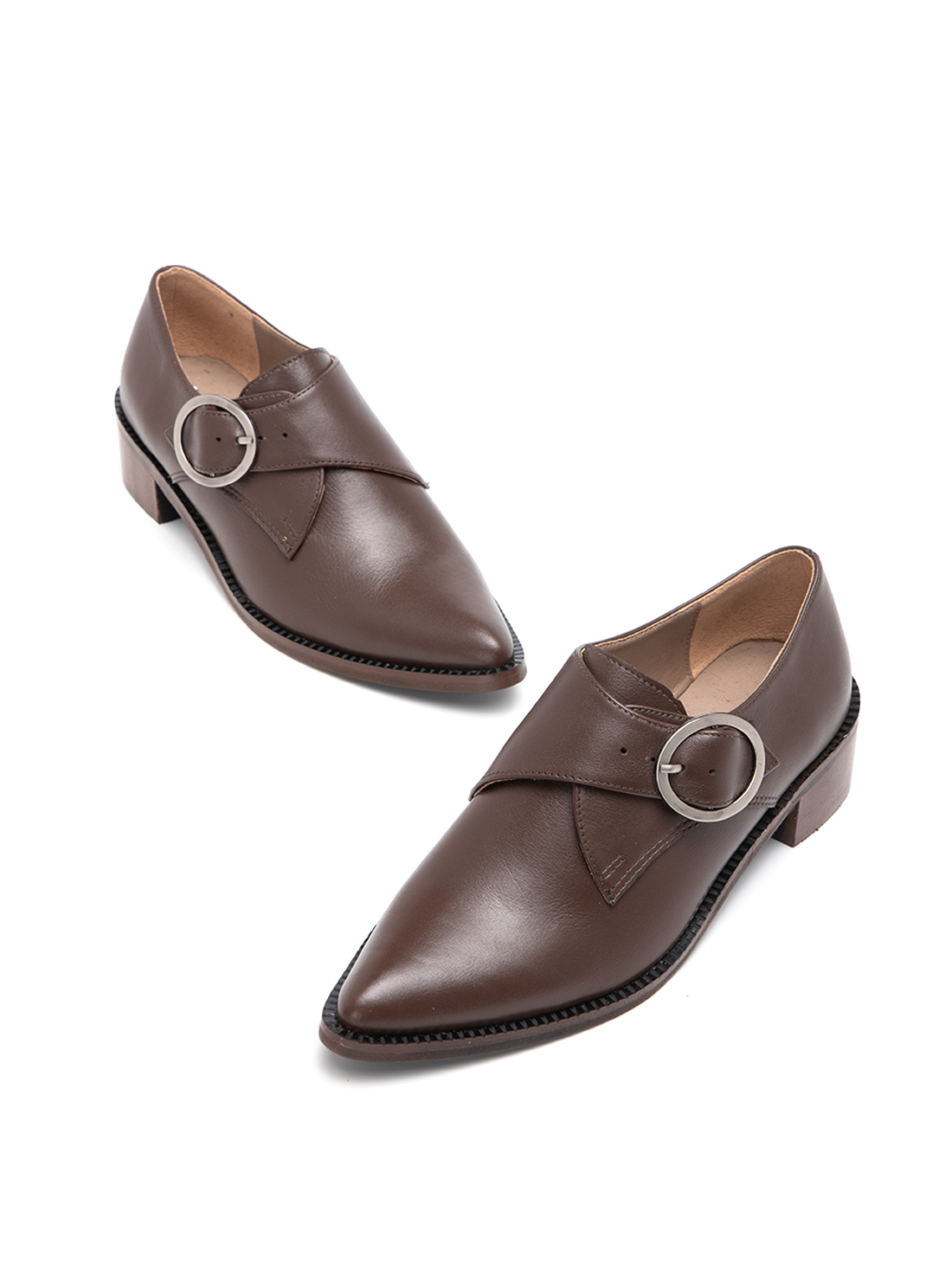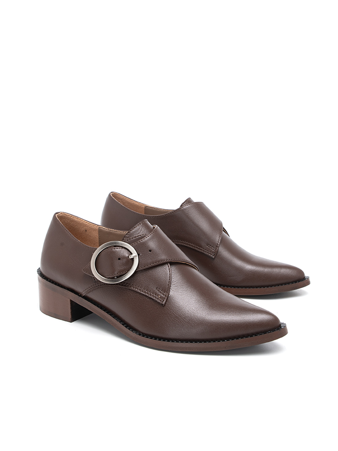 במבט ראשון היא נראית כמו אוקספורד מחויטת ומסודרת – הקו הגברי העדין, העקב הנמוך והיציב. אבל אז מופיע האבזם העגול הזה בצד, ופתאום יש כאן משהו אחר לגמרי. משהו שקורץ, שלא מתנצל, שאומר "אני לא רק עוד נעל עבודה".