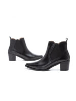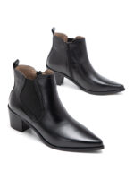 מגף צ'לסי קלאסי בגזרה נקייה ומחודדת, עם הגומי האלסטי הזה בצדדים שהופך כל בוקר למהיר יותר. לוחצת פנימה – והנעל יושבת. זהו. בלי התעסקות, בלי להתלבט אם קשרת נכון. פשוט עובד.